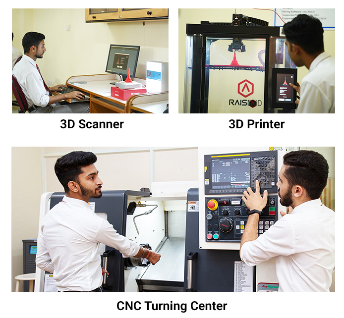 - Availability of advanced design, simulation, fabrication, prototyping and 3D printing, CNC turning center and necessary workshop equipment services at ease.