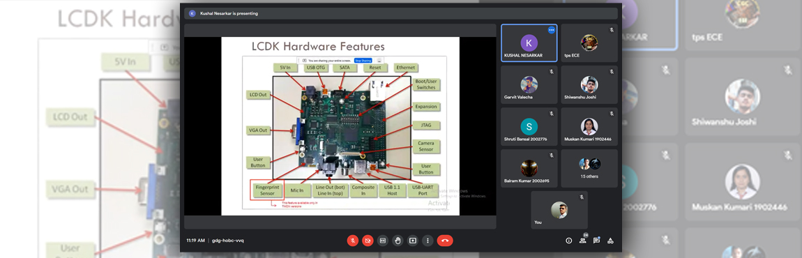 To acknowledge the students with the practical application related to TI DSP Processor and Applications,TPS (Techcomm Professional Society), Department of Electronics and Communication Engineering organized Two days workshop in hybrid mode with Mr. Kushal Vishnu Nesarkar (Embedded System Engineer, Ed Gate Technologies) on 28th-29th April 2022. About 50 students of ECE department attended the workshop. Students learnt through hands-on about TMS320C6748 DSK, LTI implementation, Filter design, real and non real time applications.